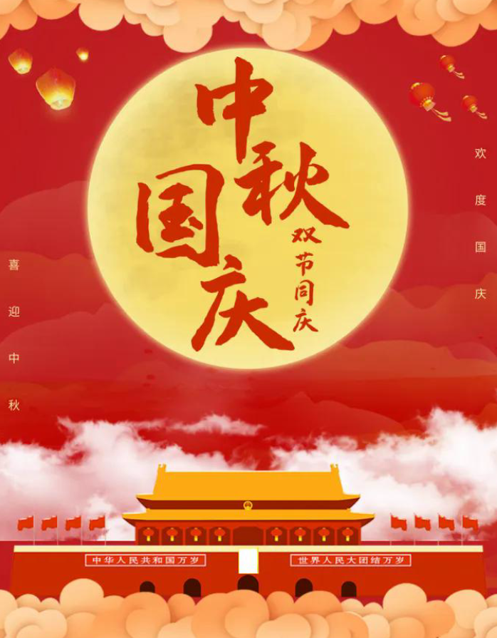金秋送丰丹桂香,双节同庆喜洋洋,举国欢腾乐满堂,中秋月明人团圆,国庆欢歌传四方。